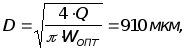 Полученное значение диаметра округляем до ближайшего типового значения D=900 мкм.