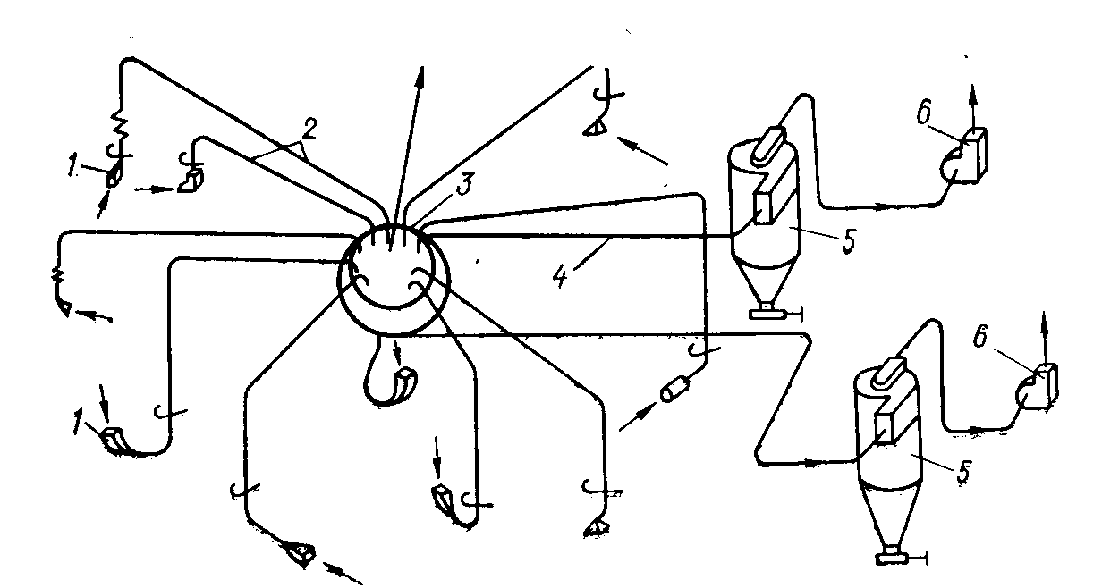 Рис. 4. Схема пылеулавливания при производстве ДСП: