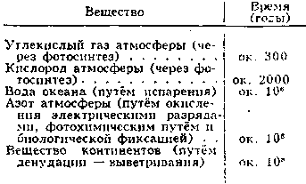 Продолжительность того пли иного цикла можно условно оценить по тому времени, которое было бы необходимо, чтобы вся масса данного вещества могла обернуться один раз на Земле в том или ином процессе (см. табл. 4.1).