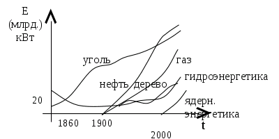 Меняется структура потребления энергоресурсов. Удельный вес потребления угля с 94% до 27%; нефть с 6% до 49%; газ с 4% до 20%.