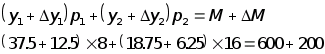 Ну а теперь вычислим оптимальные значения спроса на блага y>1>, y>2>, для исходных данных.