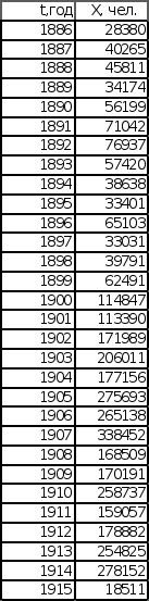эмпирическая последовательность Эмиграция в США из Центральной Европы приближается к степенной зависимости с параметрами В и t>0>. При построении графиков были получены следующие значения параметров: