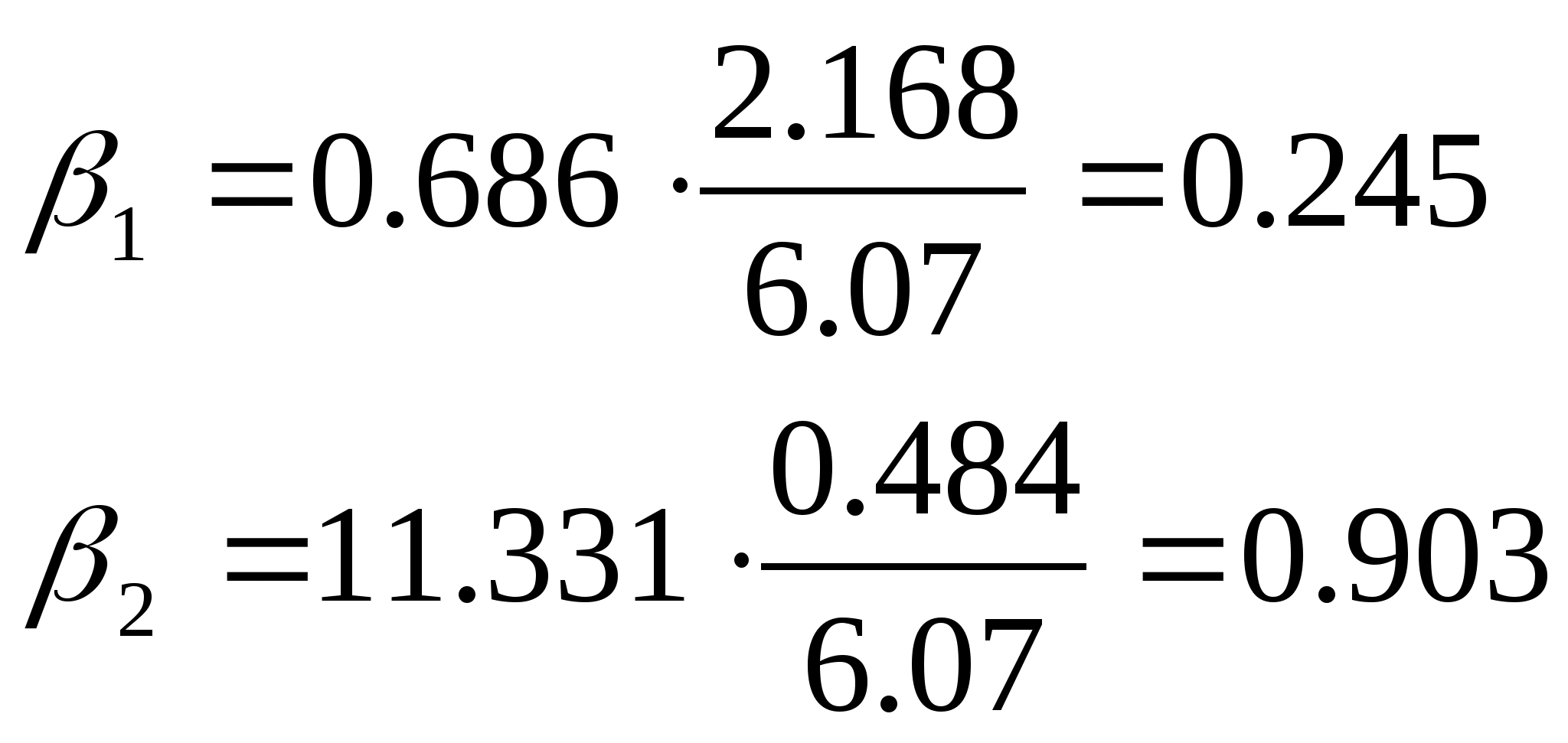 Будем рассчитывать частные коэффициенты эластичности для среднего значения фактора и результата: