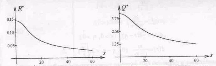 Будем изменять в модели (20), рассмотренной в приведенном выше примере, величину заработной платы s. На рис. .9-12 показано, как с изменением s в условиях совершенной конкуренции будут изменяться R* ,Q*, P* и r*.