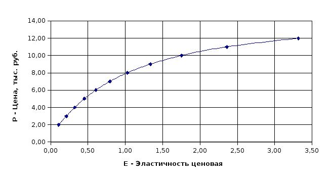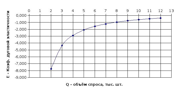 Рисунок 2. Кривая коэффициента дуговой эластичности спроса