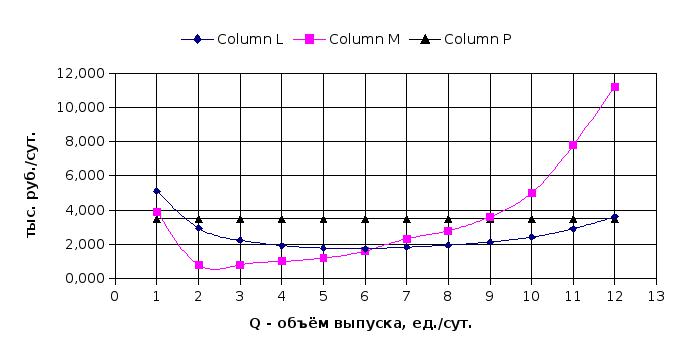 По рассчитанным данным построим графики зависимости от объёмов производства: