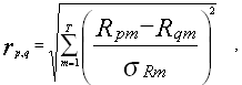 Далее, разбиение на кластеры происходит через вычисление евклидова расстояния между ценными бумагами p и q по формуле
