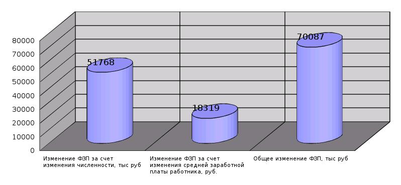 Изменение фонда оплаты труда на предприятии произошло в сторону его увеличения. Причем, как это было выявлено при более глубоком анализе, увеличение это произошло по всем факторам, которые могут оказывать влияние на этот показатель. Так, за счет увеличения численности на предприятии фонд заработной платы вырос на 51767,95 тыс. руб. Также положительное влияние на рост ФЗП оказало увеличение заработной платы, приходящейся на одного работника, составившее в свою очередь 18319,05 тыс. руб.