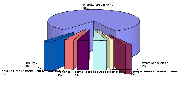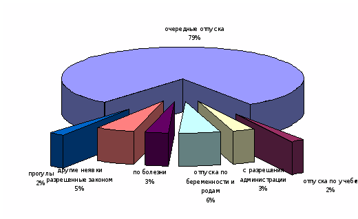 Хотя потери объемов работ в связи с неявками на работу персонала предприятия увеличились, нужно принять во внимание изменение структуры неявочного времени.
