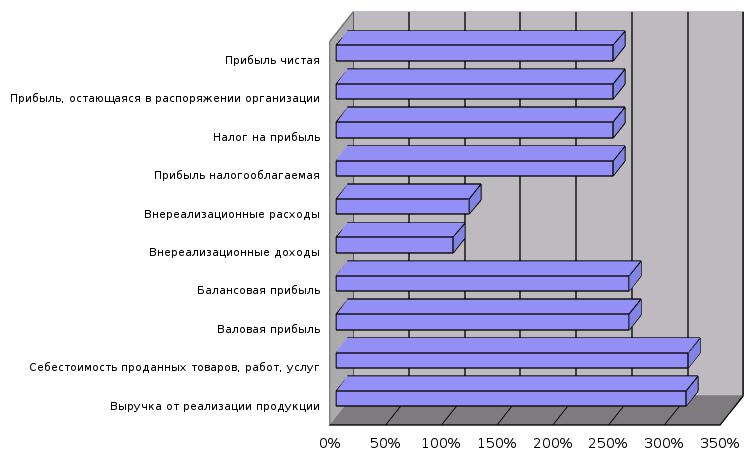 Рис. 8.1 Динамика изменения темпов роста основных показателей организации