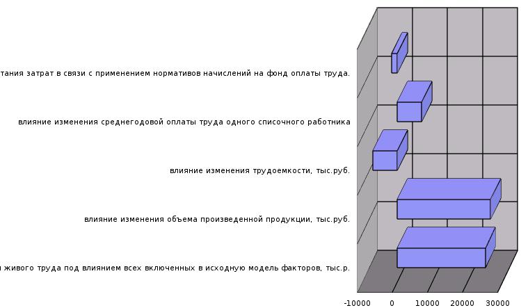 Издержки, связанные с потреблением живого труда на предприятии выросли на 25091,5 тыс. руб., но в основном за счет увеличения объема продукции (26633,06 тыс. руб.) а также изменения оплаты труда одного списочного работника (6961,24 тыс. руб.). Снижение трудоемкости работ (6961 тыс. руб.) и влияние изменения коэффициента нарастания затрат в связи с применением нормативов начислений на фонд оплаты труда (1541,6 тыс. руб.) занизили издержки, связанные с потреблением живого труда на предприятии.