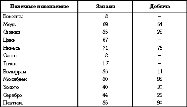 Недостаток капиталовложений даже в возмещение выбывающих мощностей в горнодобывающей промышленности привел к снижению добычи минерального сырья в отрасли за 90-е годы XX века более чем вдвое, многие рудники и горнообогатительные комбинаты (ГОКи) прекратили свое существование, большинство попыток освоения новых месторождений оказались неудачными.