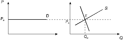 Рис. 1 иллюстрирует, что при совершенной конкуренции предложение поддерживается на равновесном уровне (P>e>). Иными словами, любой объем выпуска может быть распродан по равновесной рыночной цене. Это исключает инфляцию, безработицу, перепроизводство и другие явления экономического неравновесия.