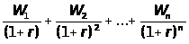 Данная формула учитывает тот факт, что издержки могут возникать не обязательно в самом начале потока доходов. Если ожидается, что изменяются условия, влияющие на стоимость ставки процента во временном промежутке потока доходов, в этих точках могут быть использованы различные значения для ставки процента.