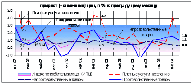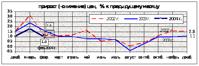 В-третьих, за последние годы отмечена тенденция снижения уровня инфляции начиная с 2003г. – 12% , планируется , что уровень инфляции за 2004г. будет составлять 10% и в перспективе тоже будет снижаться, в 2005г. – 8-9%. На сегодняшний день, условно достигнут уровень умеренной (ползучей) инфляции, т.е. в целом является безвредной и соответствующей нормальному экономическому развитию, но масштабы ее приводят к непредвиденным нарушениям в распределении национального дохода между различными социальными группами.