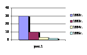 Еще большими темпами падали инвестиции: в 1992 году на 40%, в 1993 г. - на 12% и в 1994 году - на 26%. Падение физического объема реализованной товарной продукции было существенно перекрыто ростом цен на эту продукцию и услуги, т.е. денежным фактором, что нашло отражение в росте ВВП и промышленной продукции в текущих ценах.