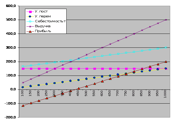 Как только будет продано количество единиц продукции достаточное для того, что бы возместить полную себестоимость, каждая дополнительно проданная единица продукции будет приносить дополнительную прибыль (как разница между суммой выручки и себестоимостью). При этом величина прироста этой прибыли зависит от соотношения У. пост и У. пер. затрат в структуре себестоимости.
