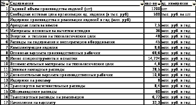 Цель работы является привитие навыков использования операционного и финансового рычагов при выполнении предпринимательского проекта.