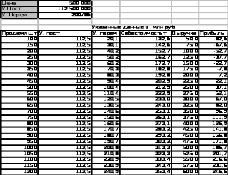Построение графика зон безубыточного ведения хозяйства. Теоретическое определение точки безубыточности.