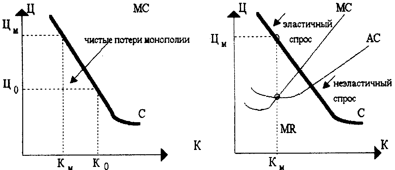 Рис.1.4. Рыночное равновесие в условиях чистой монополии.