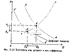 Контроль над ценами осуществляет государство на законодательной основе. Но он имеет вид вмешательства, нарушающего механизм рыночного ценообразования по законам спроса и предложения. Подобное вмешательство способны осуществлять и любые другие монопольные структуры. В любом случае вмешательства такого рода способны блокировать рыночный механизм конкурентного ценообразования. Государственное вмешательство в рыночное ценообразование чаще всего сводится к принудительному установлению цены на уровне ниже рыночного равновесия спроса и предложения. Последствия контроля над ценами могут быть многообразными, но все они, в особенности при длительном их применении, как правило, имеют отрицательный эффект в социальной и экономической сфере. Такие последствия обнаружатся в товарном дефиците, нехватке и недопроизводстве товаров, что отрицательно скажется на всем обществе.