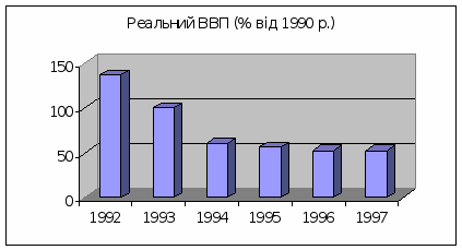 За даними Держкомстату, темпи падіння ВВП України за період з 1994 по 1997 роки були такими: