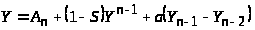 де An — інвестиції за даний період, (1-S) — гранична схильність до споживання (5 — заощадження), а — акселератор, Y— національний доход. Ytt-i і Yn-2 — національний доход, відповідно, минулого і позаминулого року.
