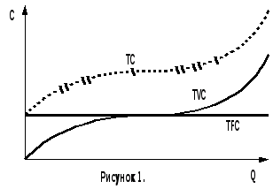 Традиционно принимаемый в экономической литературе вид функций общих издержек показан на Рисунке 1.
