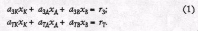 Число неизвестных в системе (9) равно числу уравнений. Систему (9) можно решить обычными алгебраическими методами и найти цены, отвечающие условиям равновесия спроса и предложения. Затем эти равновесные цены можно подставить в уравнения типа (2) и получить такие количества продуктов, которые удовлетворяют условиям рыночного равновесия.