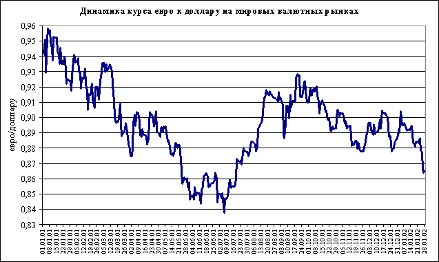 Однако к концу месяца перспективы развития крупнейшей мировой экономики стали выглядеть менее туманными. Неожиданный рост ВВП США в IV квартале 2001 составил 0.2%, в то время как в III квартале ВВП сократился на 1.3%. Всего в 2001 году объем ВВП вырос на 1.1% по сравнению с ростом в 4.1% в прошлом году. Таким образом, формально рецессии, которая определяется двумя кварталами сокращения ВВП, в США нет, поскольку в 2001 году ВВП уменьшился лишь в III квартале. Отметим, что приведенная цифра являются предварительной оценкой и может быть пересмотрена. Второе за месяц выступление Гринспена, которое состоялось 24 января перед бюджетным комитетом Сената было более оптимистичным. Глава ФРС отметил, что переживающая спад экономика США постепенно избавляется от препятствий к восстановлению роста, и на данном этапе уже можно ожидать восстановление деловой активности.