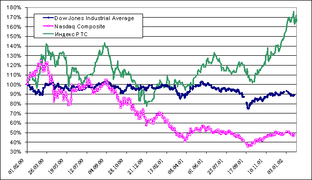 Заметим, что бурный рост российского рынка проходил на не слишком оптимистичном фоне. В январе в мировой экономике продолжились негативные тенденции. Немецкий институт экономических исследований DIW снизил прогноз роста экономики ФРГ в 2002 году до 0.6% с предполагаемых ранее 1.3% и зоны евро до 1.1% с 1.6% в 2001 году. Глава ЕЦБ Вим Дуйзенберг сказал, что дефицит бюджета Германии, который подошел “опасно близко” к максимально допустимому уровню в 3%, вызывает значительное беспокойство.