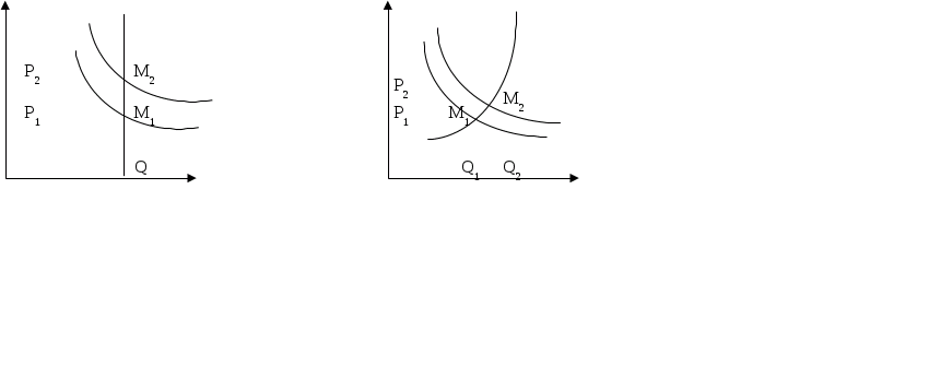 При мгновенном равновесии предложение товара не меняется, но в связи с увеличением спроса равновесная цена на него увеличивается. Типичным примером может служить продажа скоропортящегося товара, например, рыбы, фруктов и иных продуктов, которые необходимо реализовать за короткое время. Эту ситуацию можно изобразить на графике путем передвижения точки равновесия вверх по прямой линии, изображающей постоянное предложение (см. рисунок 4а).