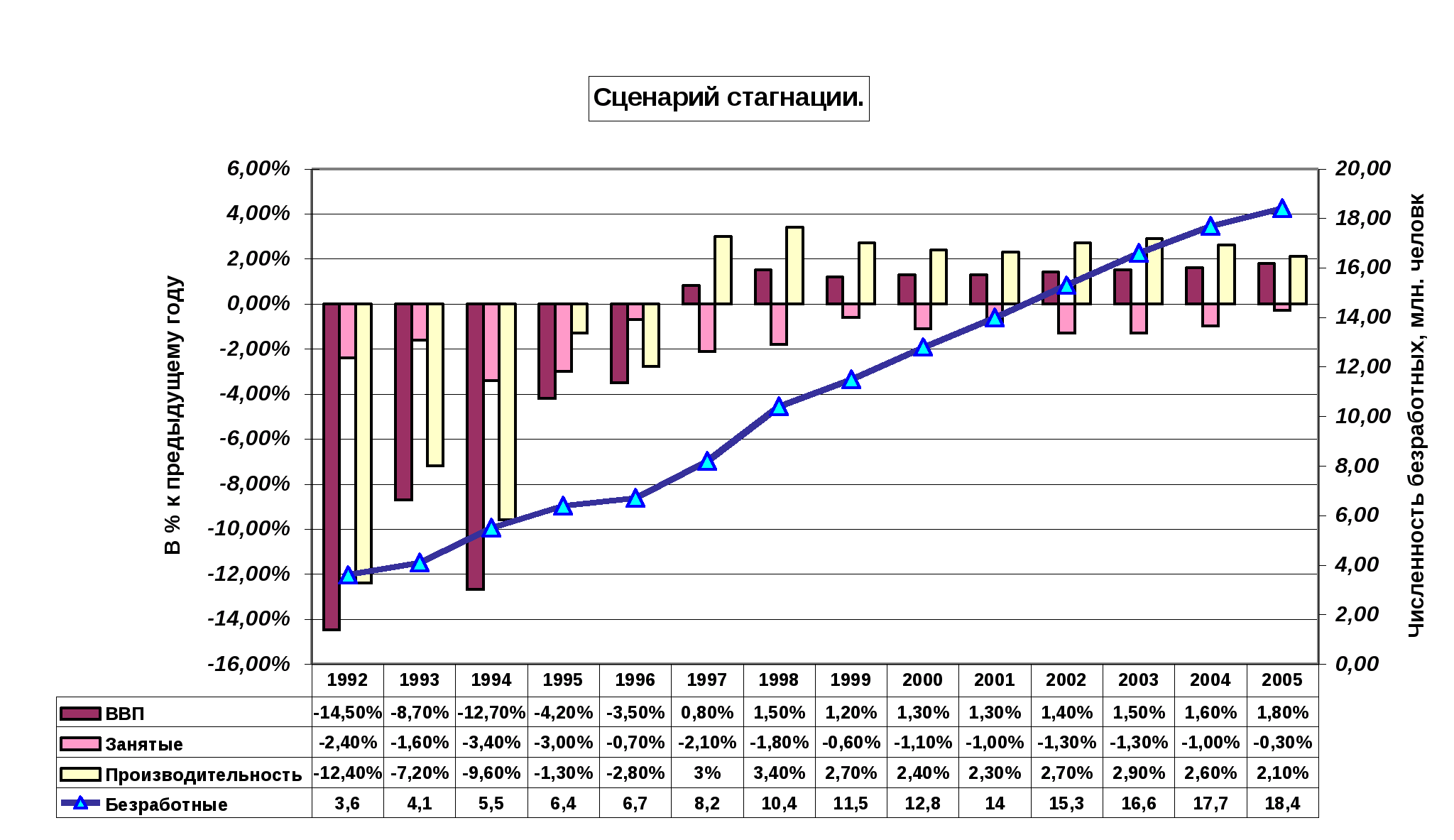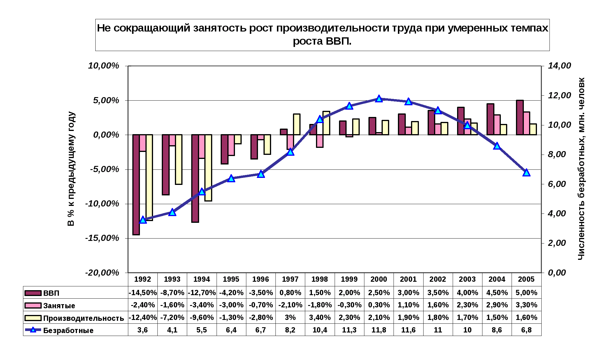 | Безработные | 3,6 | 4,1 | 5,5 | 6,4 | 6,7 | 8,2 | 10,4 | 11,3 | 11,8 | 11,6 | 11 | 10 | 8,6 | 6,8 |