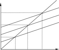 По мнению сторонников абсолютного дохода, функция потребления c постоянной средней формулой неприменима, что проистекает из того, что «действительная» функция потребления типа (1) с течением времени сдвигается вверх (рис. 2). Точки M, N, L относятся к разным функциям потребления, а луч OL, соответствующий выражению С = С>у>у, не является графиком функции потребления.
