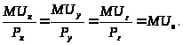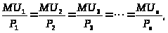 где MU – предельная полезность отдельных товаров, а P – их цена.
