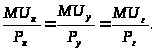 Введем обозначения: цены товаров – Р>x>, Р>y>, P>z>; предельные полезности товаров – MU>x>, МU>y>, МU>z>.