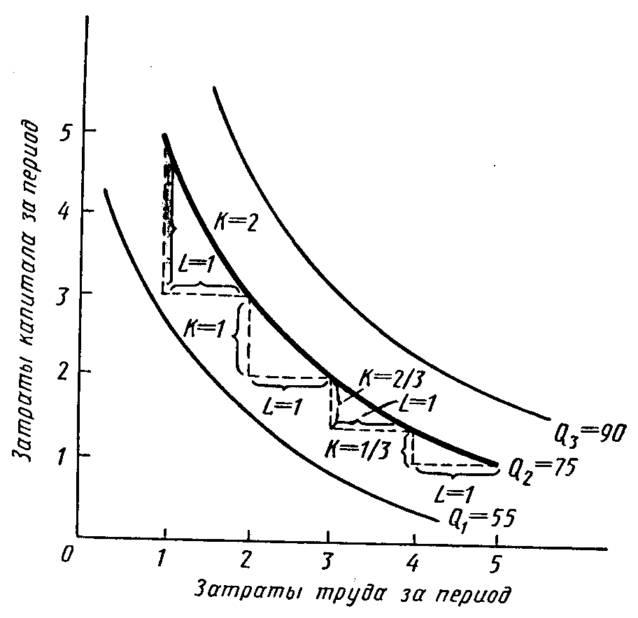 где К и L представляют собой относительно небольшие изменения капитала и труда для отдельной изокванты (т. е. для постоянного Q).