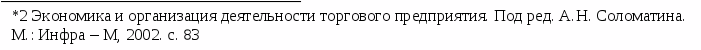 Экономика и организация деятельности торгового предприятия. Под ред. А.Н. Соломатина. М.: Инфра-М, 2002.