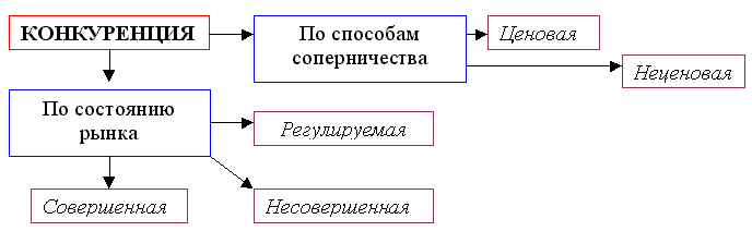 В данной схеме показана основная, самая популярная классификация: по состоянию рынка и по способам соперничества.