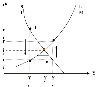 Оба рынка определяют равновесную пару, причем именно процентная ставка и ее изменение является той переменной, которое определяет равновесие в этом случае.