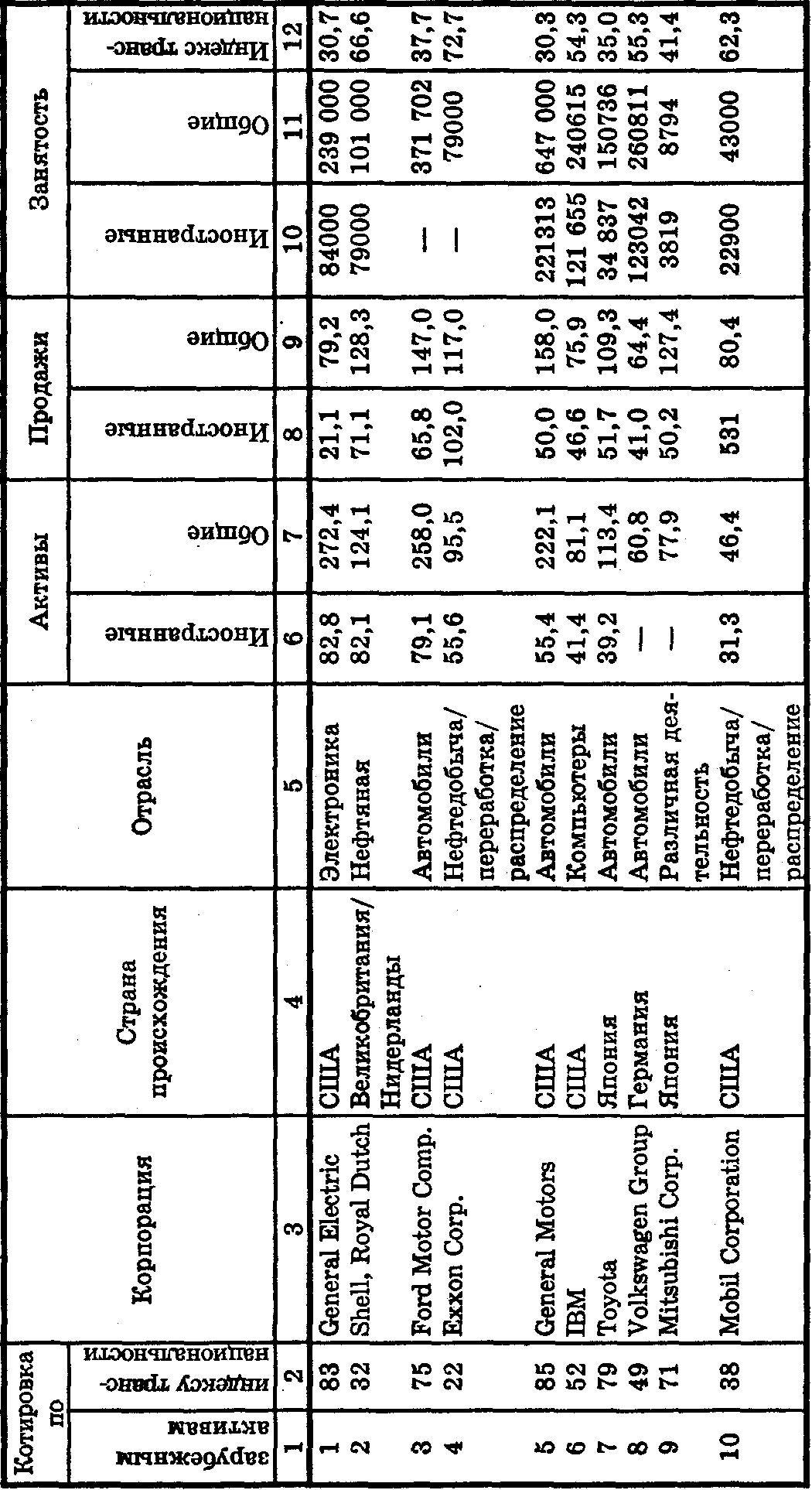 Характеристика крупнейших международных корпораций мира в конце XX века приведена в табл. 1.