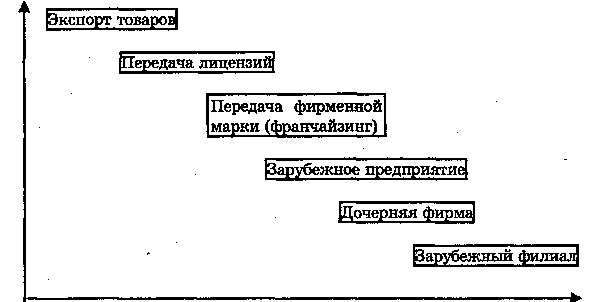 Ориентированная на расширение сбыта за рубежом данная модель отражает последовательное дополнение исторически и логически первой формы интернационализации — товарного экспорта новыми формами международной предпринимательской деятельности — экспортом лицензий, торговой марки, прямыми зарубежными инвестициями.