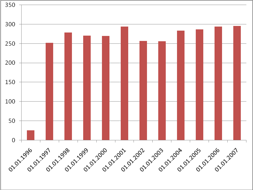 За последние шесть лет размер средств пенсионных резервов вырос почти в 65 раз (для сравнения, на конец 1998 г. размер указанных средств составлял 4,25 млрд. рублей), численность участников фондов по сравнению с концом 1998 г. выросла в 32 раза и составила более 6 миллионов человек - в настоящее время услугами фондов охвачено приблизительно 6% экономически активного населения России.