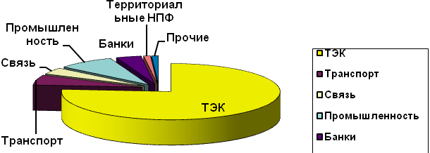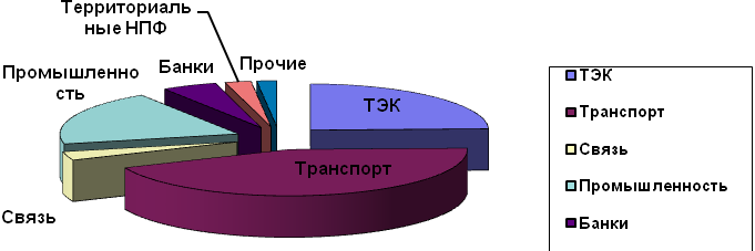 Диаграмма 4 Структура пенсионных резервов НПФ по отраслям хозяйства (в процентах от суммы по фондам)11