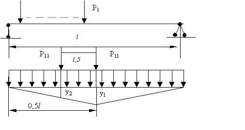 где - длина загружения линии влияния принимается равной расчетному пролету (l) балки при определении изгибающего момента в середине пролета балки.