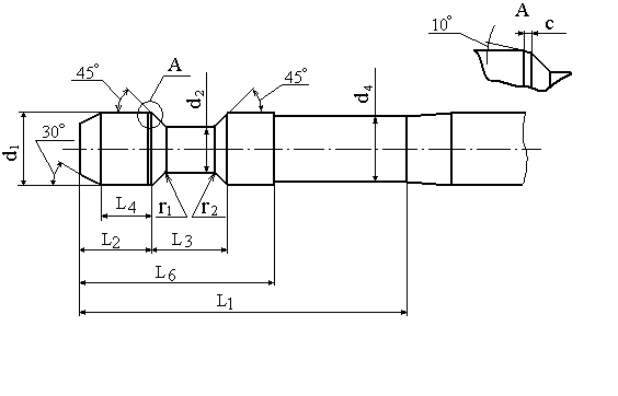 2.4.29. Размеры шпоночного паза d>0> = 32H6 выбираем по справочнику: Анурьев В.И. Справочник конструктора – машиностроителя: в 3т. М.: Машиностроение, 1985. Т.2, 559 с. b>ш> = 10 H7 = 10 + 0,018 мм; t>ш> = 3,3 мм Остальные размеры фрезы (фаски, радиусы) выбираются конструктивно. |
