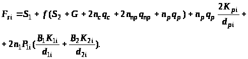 Общая сила трения при движении заготовки в механизме подачи. Числитель в формуле (132) представляет собой сумму силы S>1> и силы трения Т, возникающей в механизме подачи. С учетом конструктивных коэффициентов значение силы трения можно определить по следующим выражениям, Н: