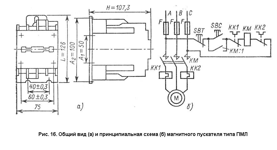 Дугогасительные камеры с деионной решёткой расположены над контактами каждого полюса выключателя и представляют собой набор укреплённых в изоляционной оправе 15 стальных пластин14, с помощью которых происходит разделение дуги на ряд последовательных дуг. Искрогаситель 16 предназначен для гашения пламени дуги, возникающей при отключении автоматическим выключателем тока КЗ.