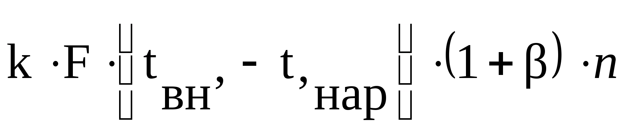 Q>зоны> =1/ R>зоны> * F>зоны> (t>вн> - t>нар >) [Вт] , где