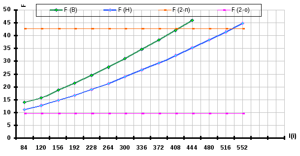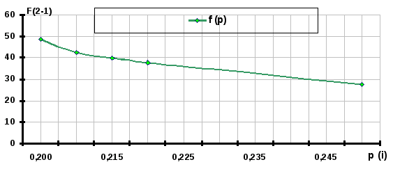 В соответствии с зависимостью {29}, рассчитывается значение F>2-1>, соответствующее величине p>i>, из условия задания, и несколько произвольно выбранных значений в диапазоне от начальной до предельной площади в замке. На основании полученных значений строится зависимость F>2-i> = f(p>i>).